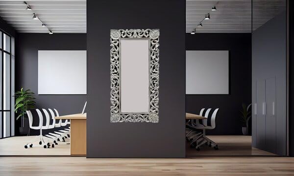 White Rustic Finish Wooden Mirror – Handcrafted Solid Wood Frame, Modern Irregular Wall Mirror for Living Room, Bedroom & Hallway Decor