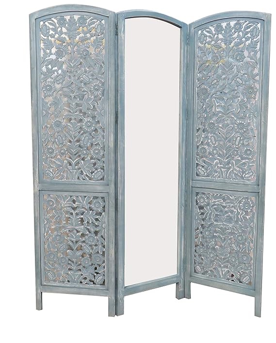 Wooden Handicraft Screen 3 Panel with Mirror |Wall Frame | Mirror Frame | Hallway | (Size 60×72 Inch)
